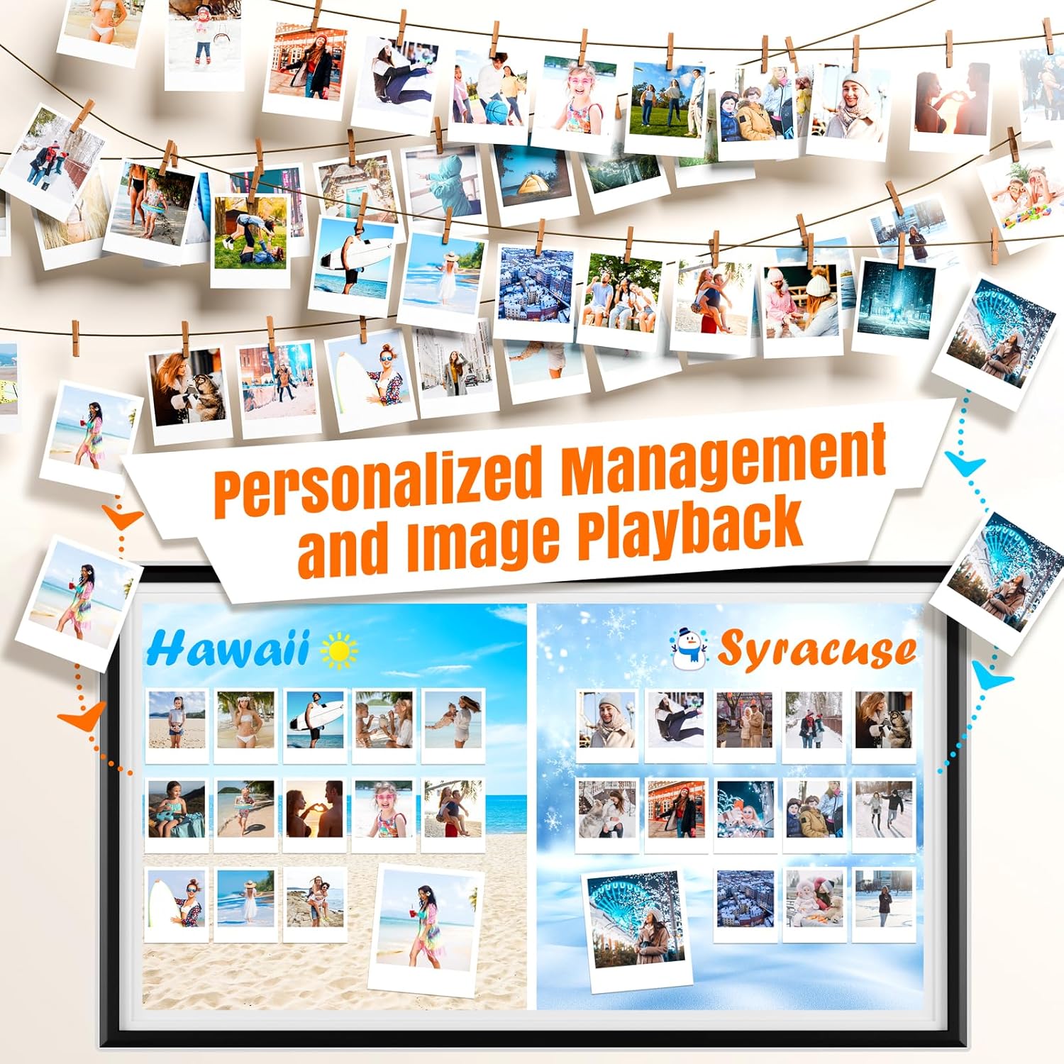 - Pictures from the West Coast: Share your latest moments anywhere via the encrypted app! Beyond SD/USB/computer transfers, send photos and micro-videos securely to your smart digital frame by smart phone. send your happiness while traveling